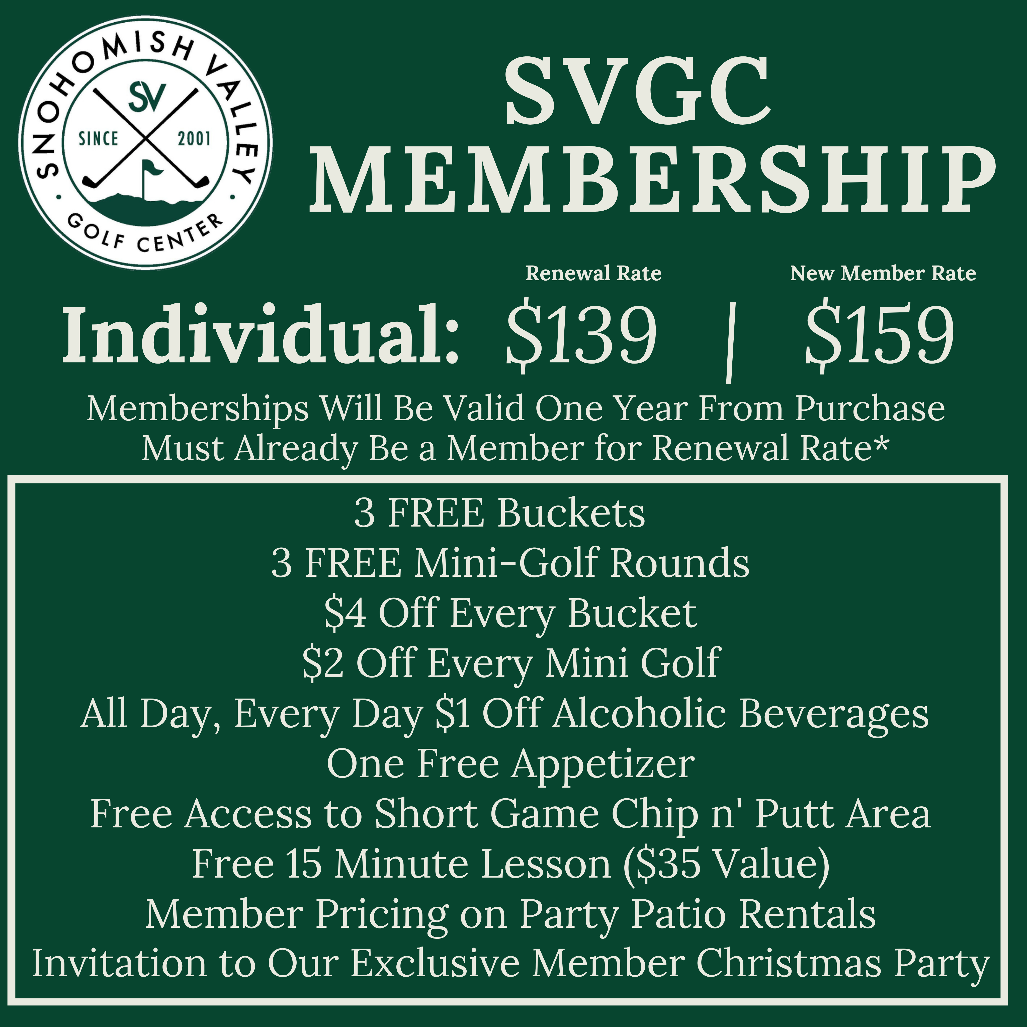 Snohomish Valley Golf Center Individual Membership to enjoy these benefits: