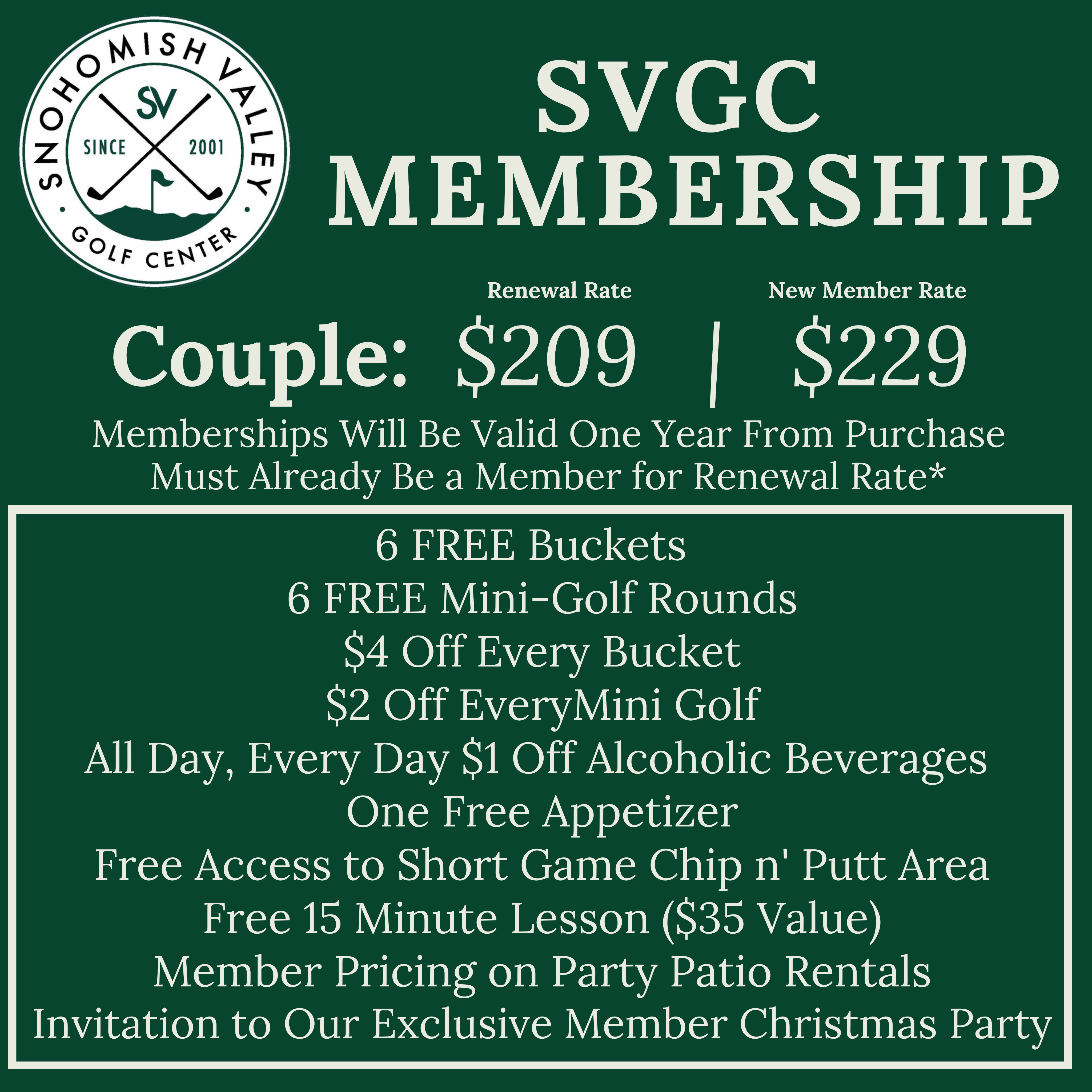 Snohomish Valley Golf Center Individual Membership to enjoy these benefits: